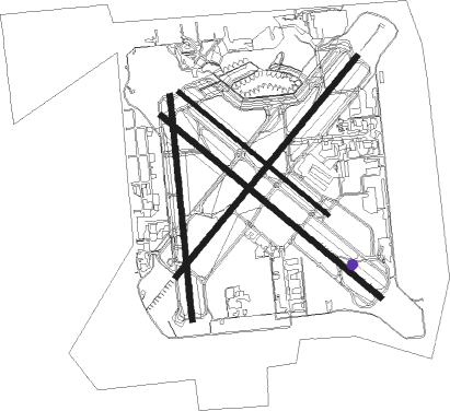 | runway | airway (heading) | route (dist, bearing) |