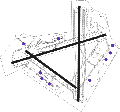 | runway | airway (heading) | route (dist, bearing) |