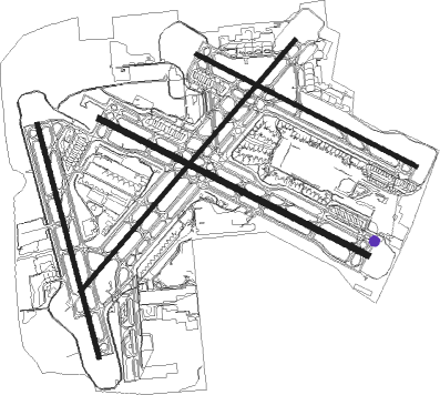 | runway | airway (heading) | route (dist, bearing) |