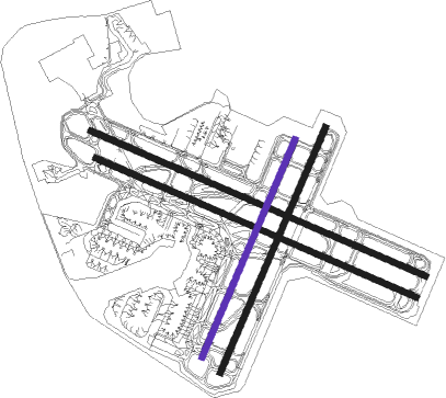 | runway | airway (heading) | route (dist, bearing) |
