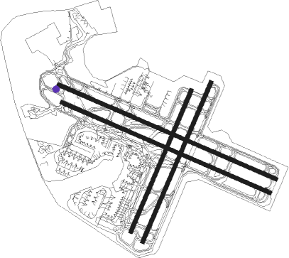 | runway | airway (heading) | route (dist, bearing) |