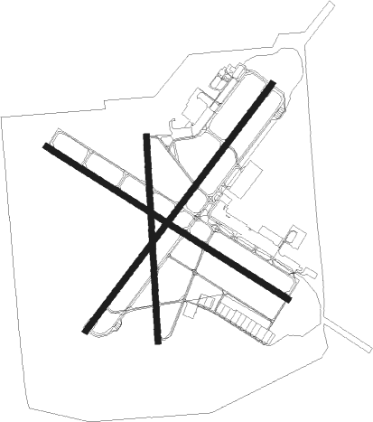 | runway | airway (heading) | route (dist, bearing) |