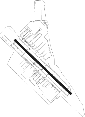 | runway | airway (heading) | route (dist, bearing) |