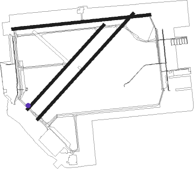 | runway | airway (heading) | route (dist, bearing) |