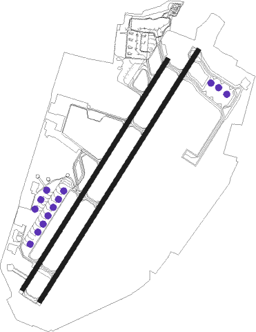 | runway | airway (heading) | route (dist, bearing) |