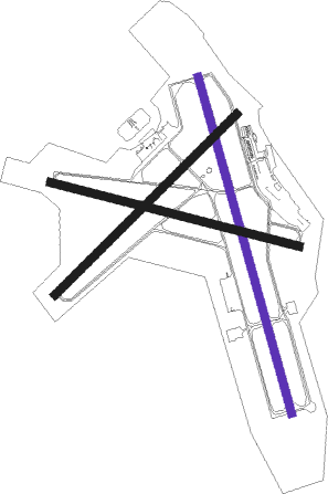 | runway | airway (heading) | route (dist, bearing) |